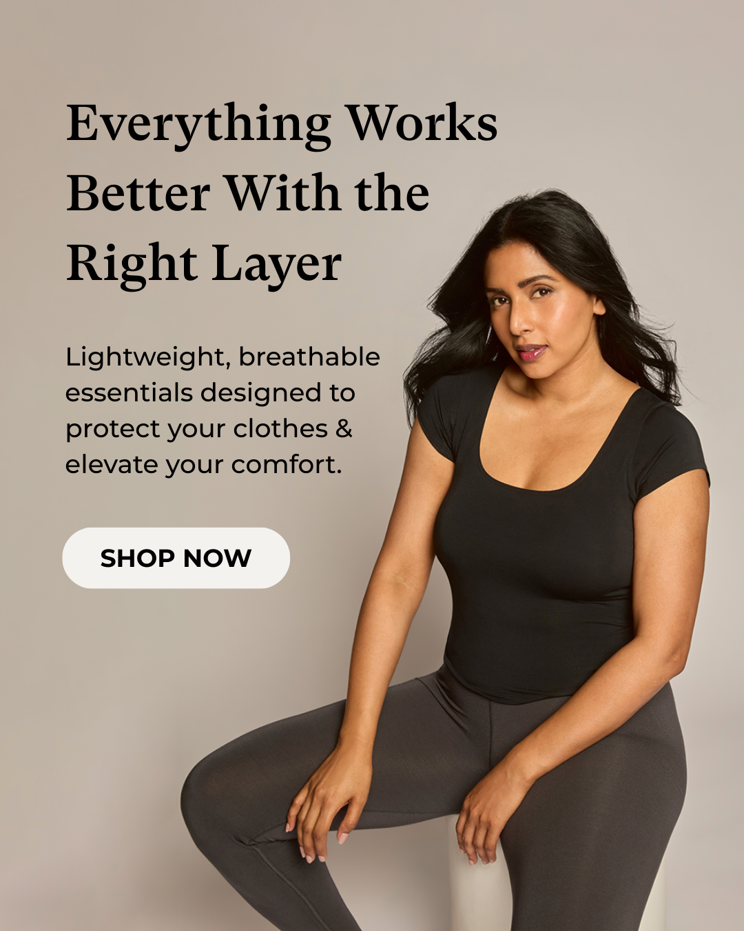So we made the world’s first undershirt just for women. Sweat-proof, ultra-comfortable, and confidence-boosting by design.