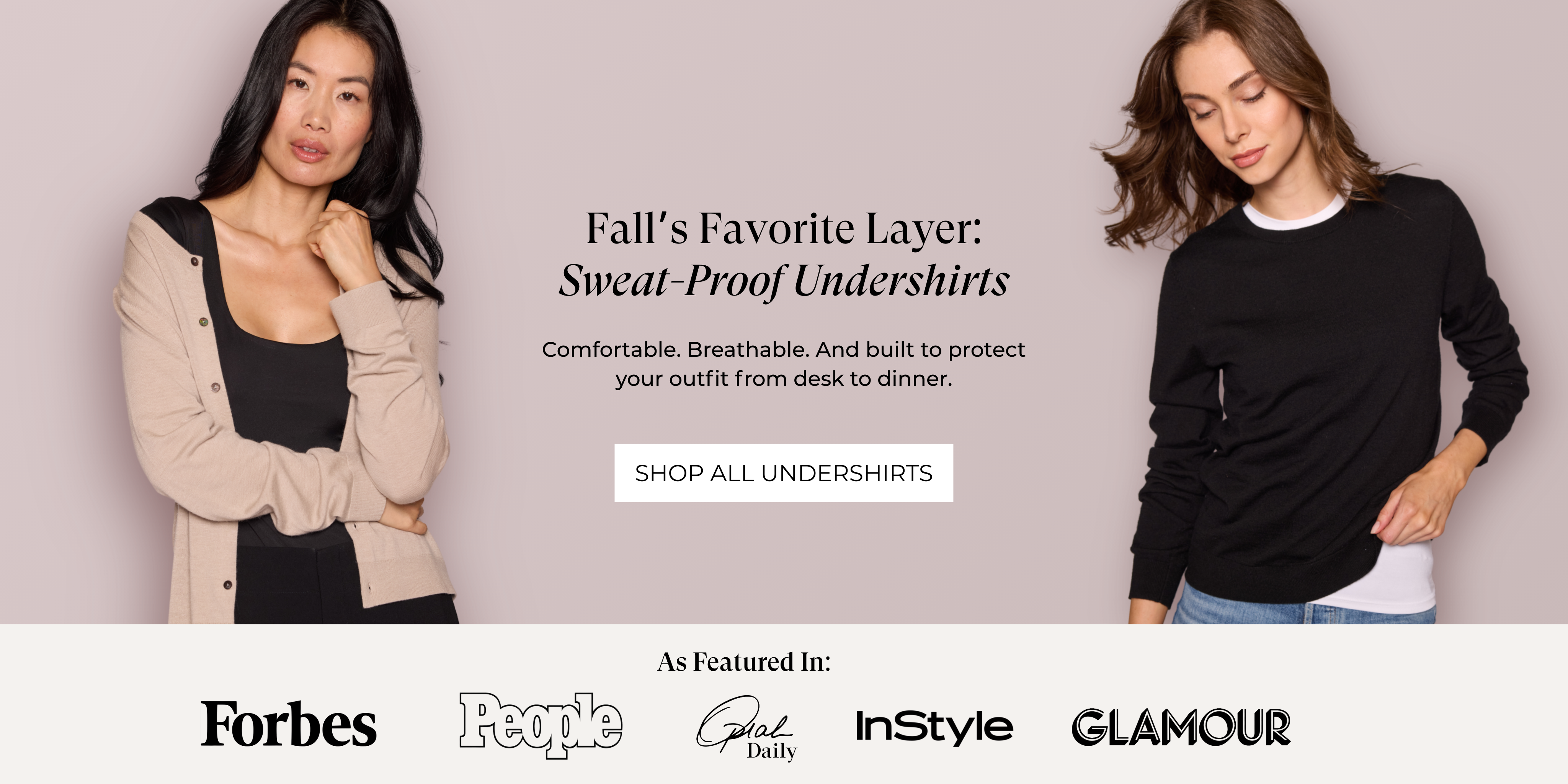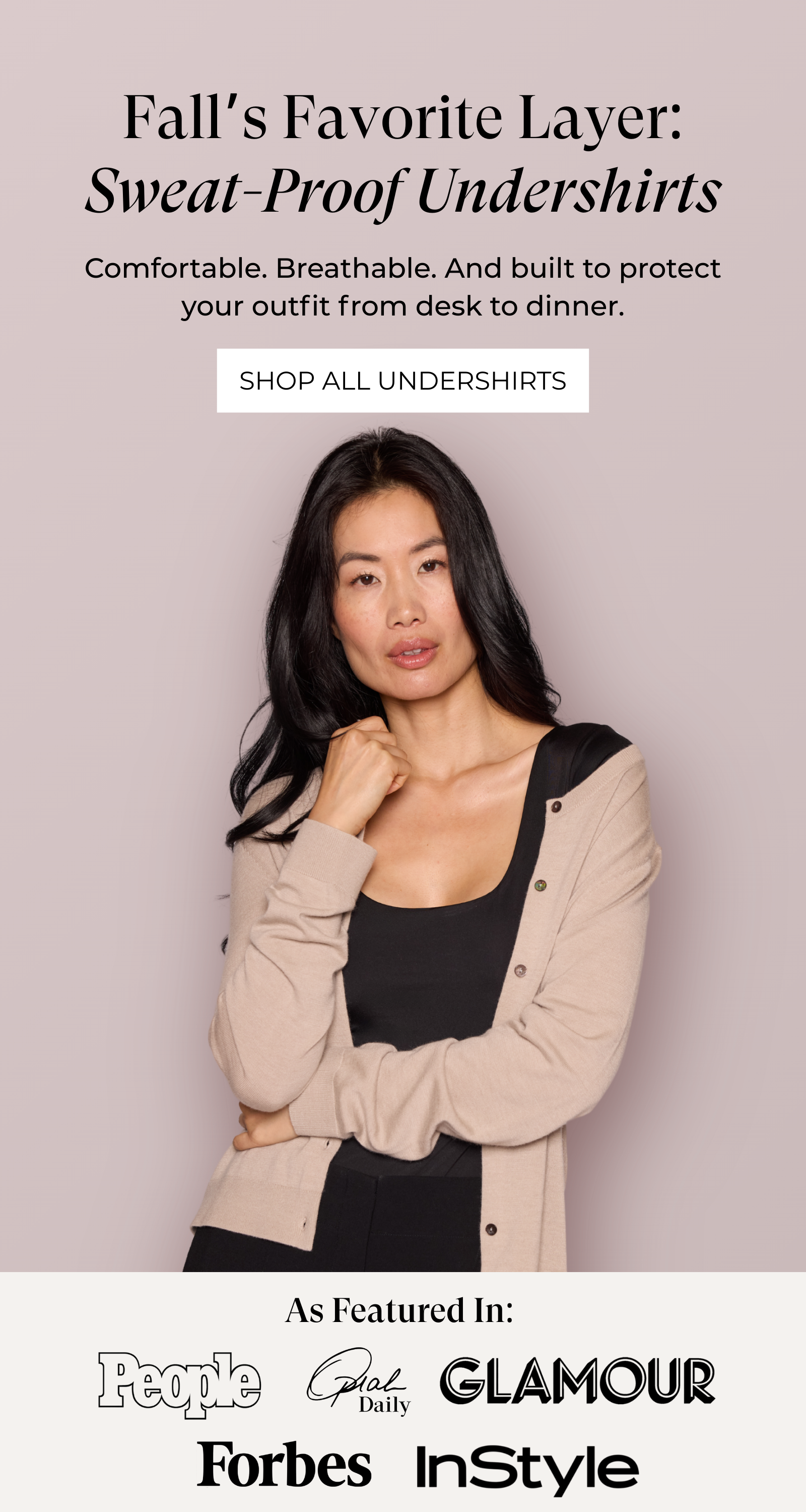 So we made the world’s first undershirt just for women. Sweat-proof, ultra-comfortable, and confidence-boosting by design.