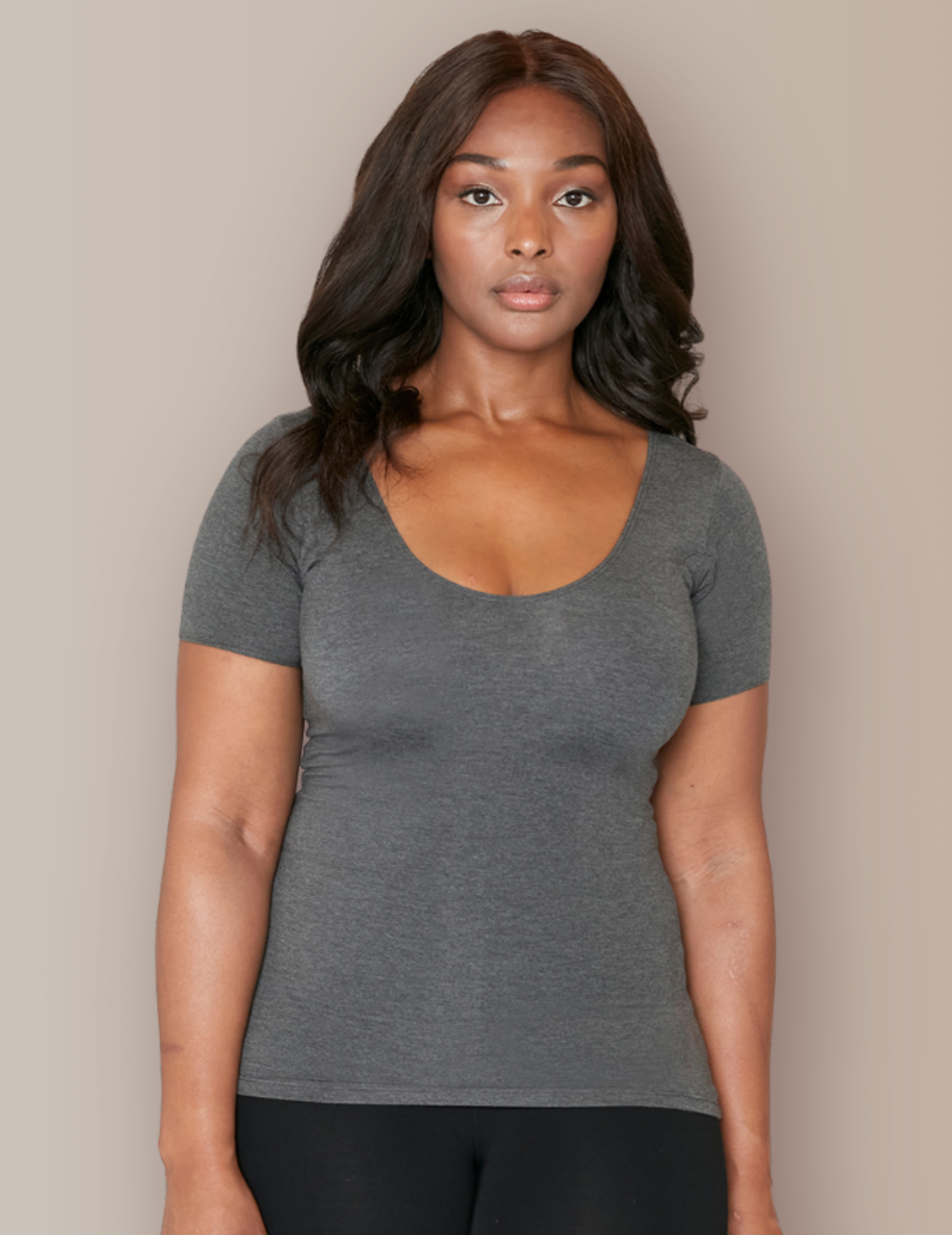 • Reversible neckline: choose between scoop or jewel neck