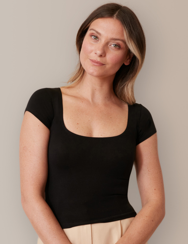 This undershirt is designed with cap sleeves to seamlessly layer under all your shorter sleeved blouses without peaking out. With a flattering square neckline, it will also work perfectly with your favourite blazers & cardigans.